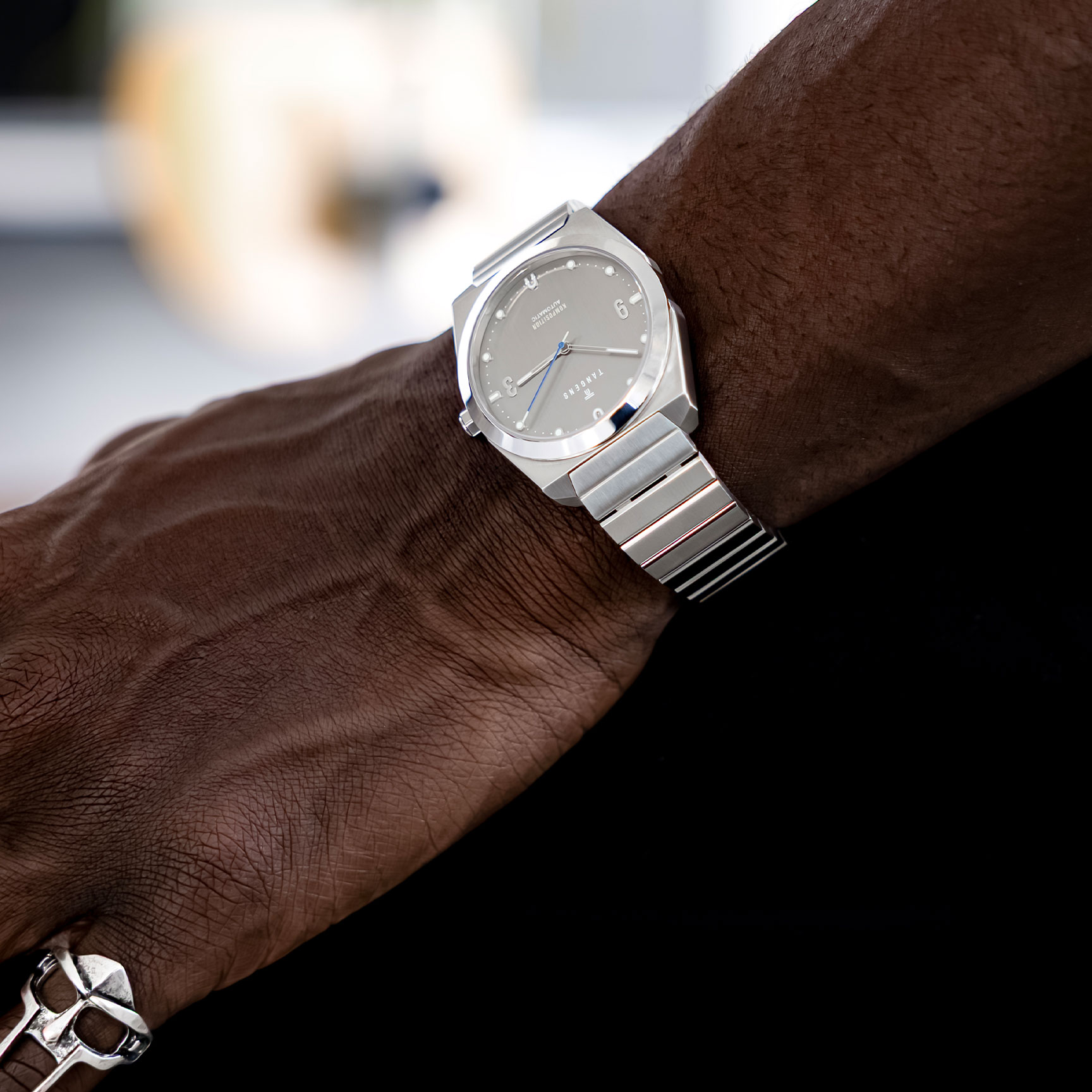 Komposition Automatic blends 70s-inspired geometry with modern proportions in a refined 38 mm case.